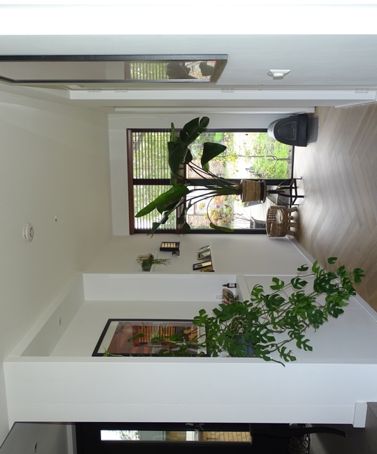 Ook de serre is aangepakt zodat het geen “bijruimte” meer is, maar een echte uitbreiding van de woonkamer. De serre kreeg een nieuw dak met lichtstraat, geïsoleerde buitenwanden en openslaande deuren. Daardoor is de ruimte comfortabeler, lichter en bruikbaar in meerdere seizoenen.