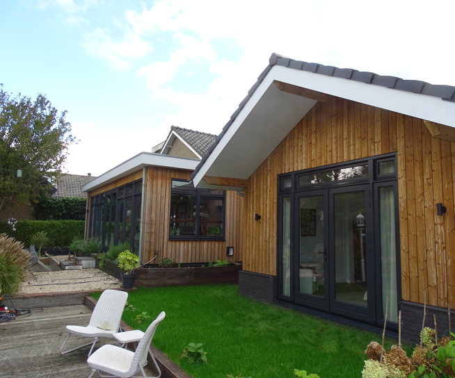 De bewoners van deze woning in Roelofarendsveen, wilden hun woning uitbreiden met een volwaardig gastenverblijf, een nieuwe serre en een schuur/garage. Het eerste ontwerp dat zij door een andere architect lieten maken, sloot niet goed aan op het budget en de woonwensen. Wij keken mee met dit ontwerp, en zijn aangehaakt om het plan praktisch en haalbaar te maken. Samen hebben we het aangepast naar een oplossing die wél klopt, zowel qua gebruik als kosten. Daarna hebben we het complete traject uitgevoerd, van doorgang in de woning tot afwerking.